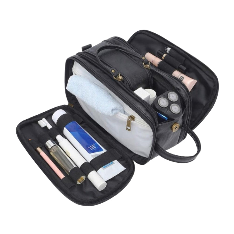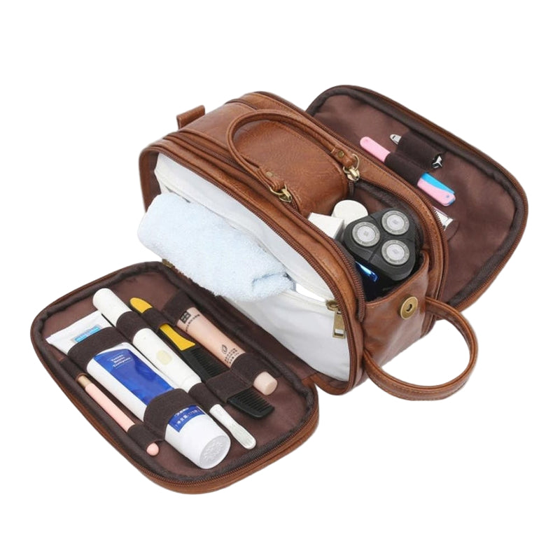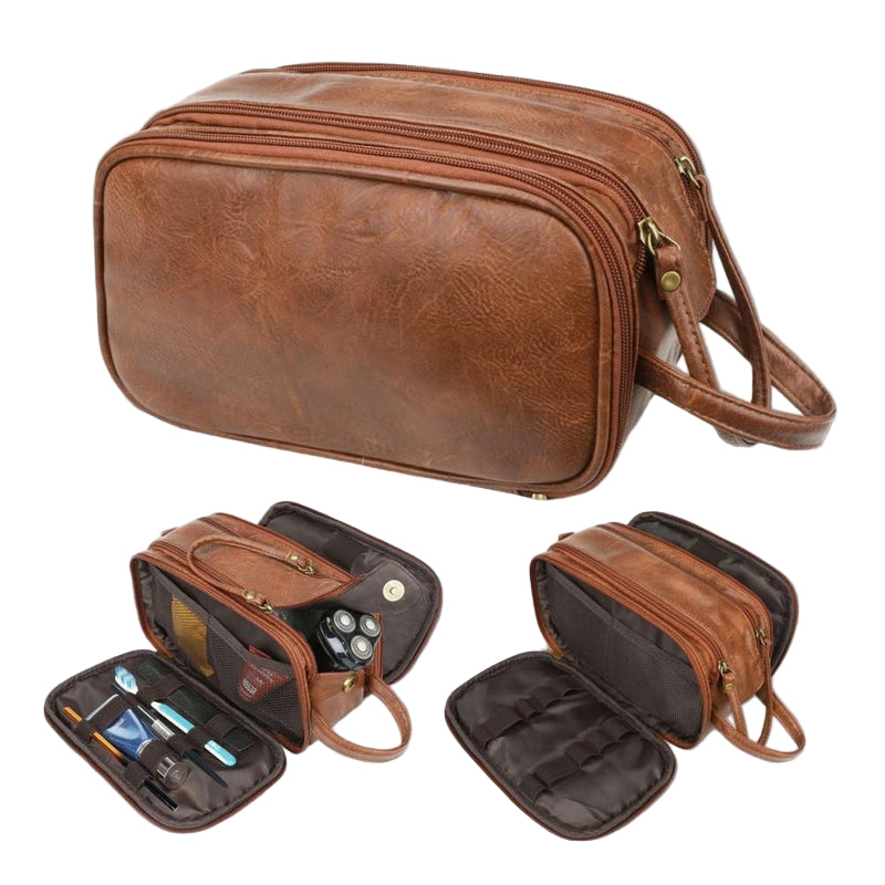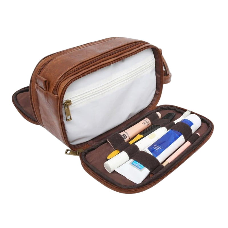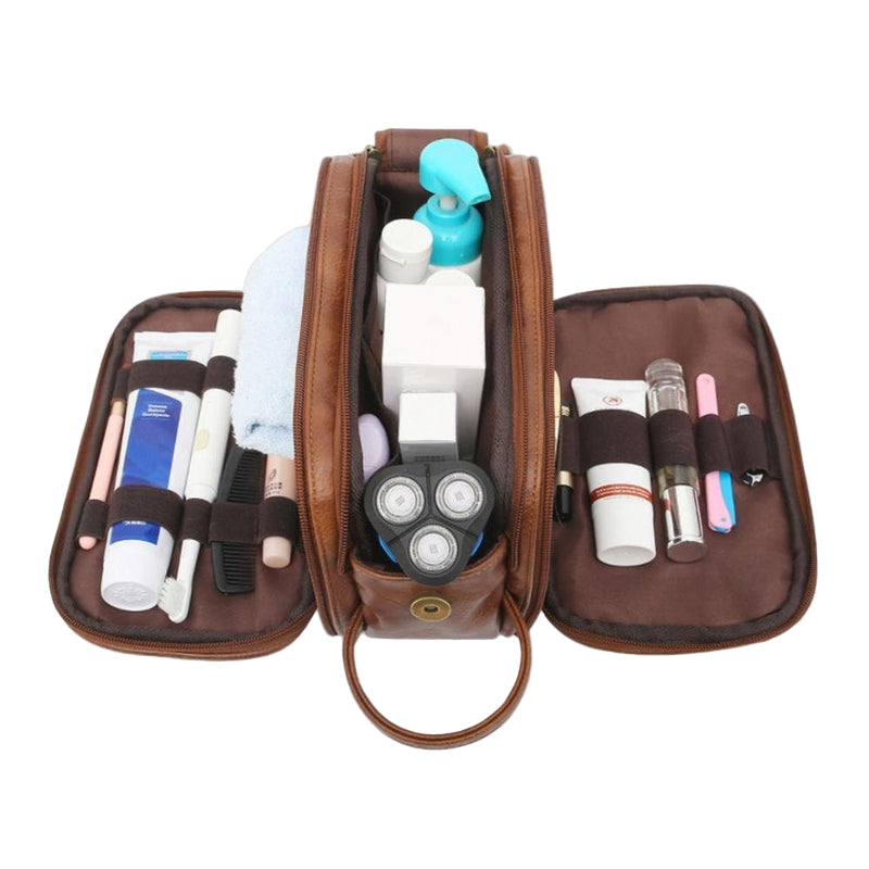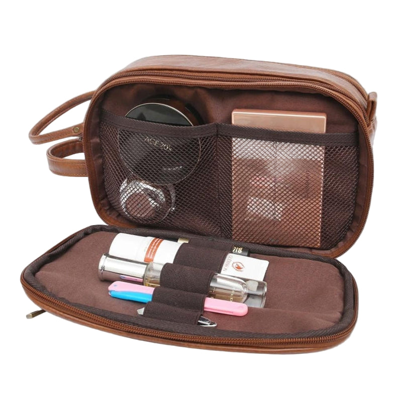 Klasyczna Skórzana Kosmetyczka | Organizator Podróżny z Dwoma Zamkami
