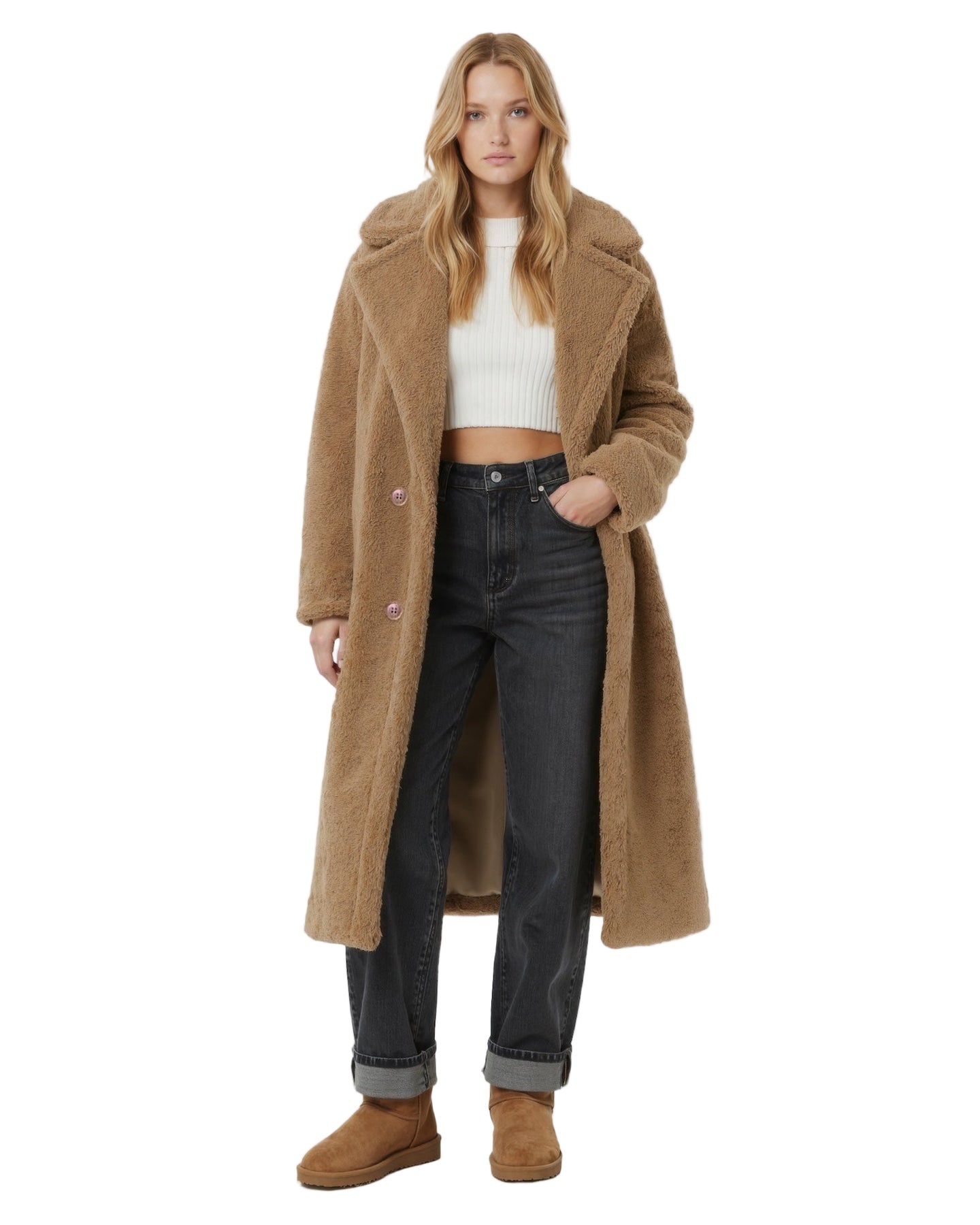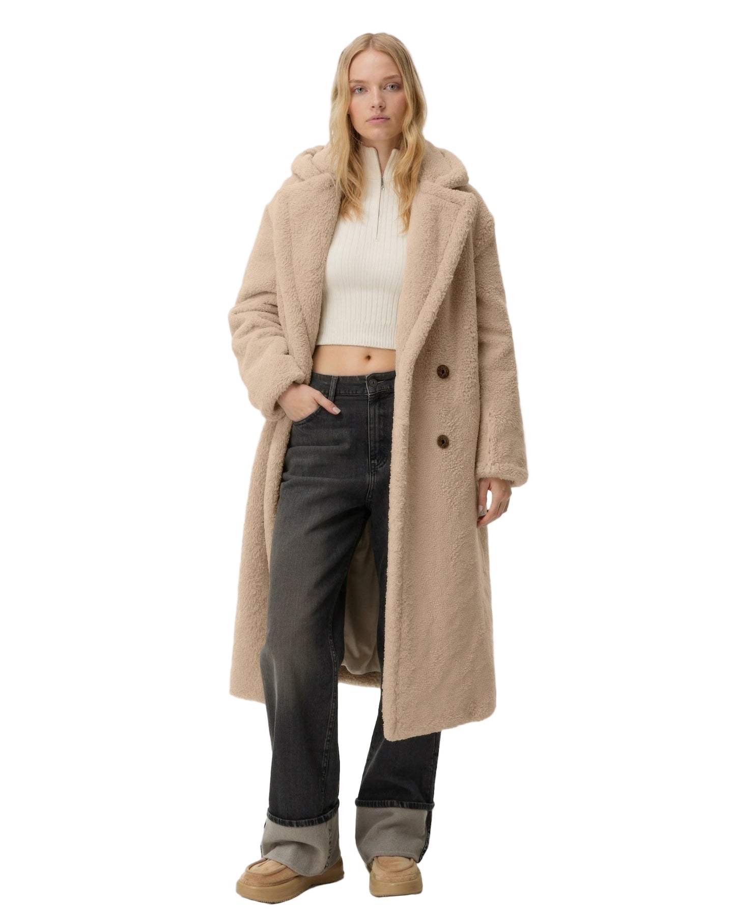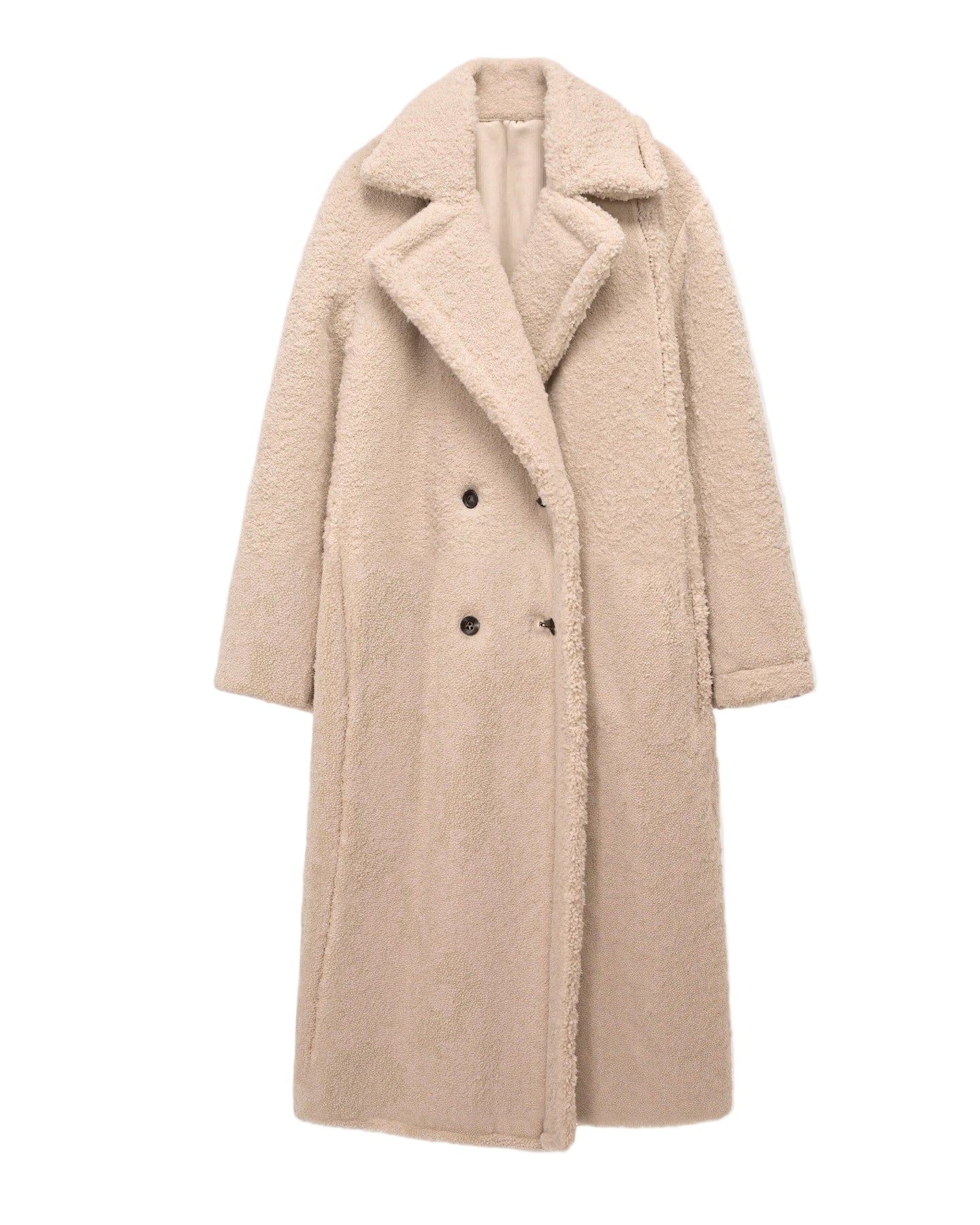 Długi Płaszcz ze Sztucznego Futra | Płaszcz z Dwoma Rzędami Guzików i Kołnierzem dla Kobiet