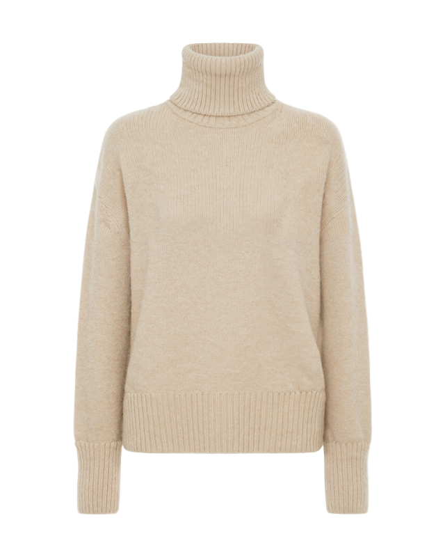 Ten Damski Pulower Golf o Luźnym Dopasowaniu wnosi schludny, ponadczasowy akcent do codziennego ubierania. Luźna sylwetka oferuje nowoczesny wygląd, który dobrze sprawdza się w różnych sytuacjach. Delikatna dzianinowa tekstura pozwala swetrowi naturalnie się układać, zachowując przy tym schludny wygląd. Klasyczny golf dodaje wypolerowane wykończenie, a prążkowane wykończenia wzdłuż mankietów i dołu uzupełniają element prostym detalem.