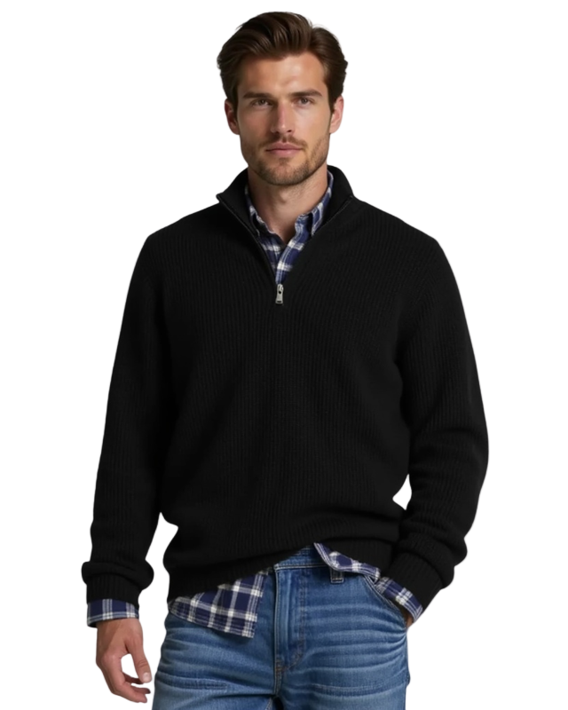 Dzianinowy Sweter Kwartał-Zamek błyskawiczny | Pulower ze Stójką i Długim Rękawem dla Mężczyzn