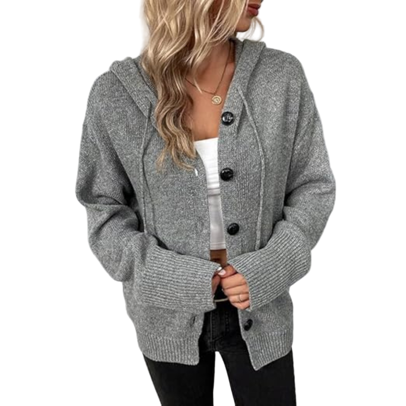 Kardigan na Guziki z Kapturem | Prążkowana Dzianina Oversize dla kobiet