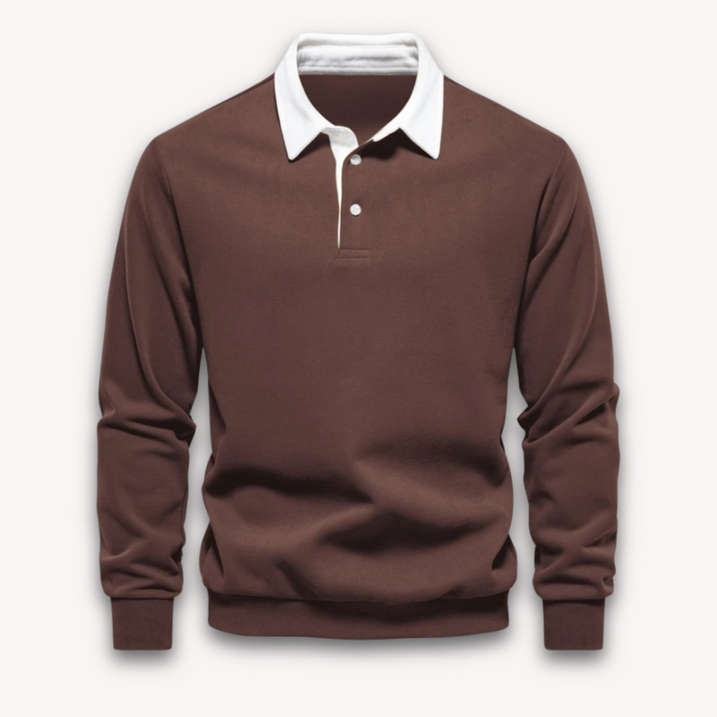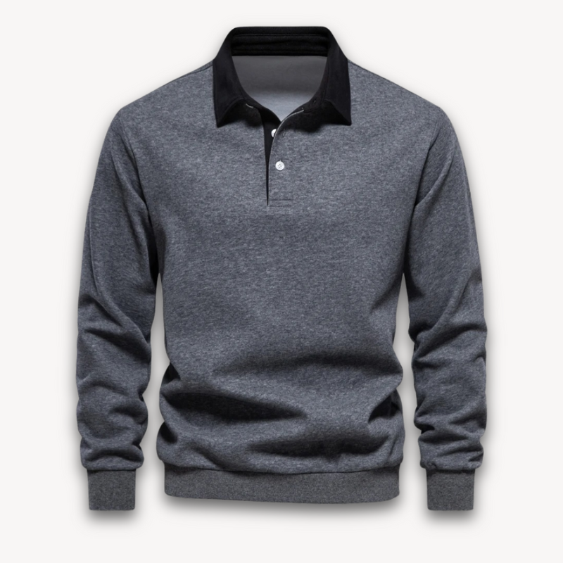 Ta koszulka polo z dzianiny dla mężczyzn stanowi wyrafinowane odświeżenie klasyki garderoby, łącząc strukturę koszuli z kołnierzykiem z lekkością swetra. Długie rękawy sprawiają, że jest to doskonały wybór na chłodniejsze dni, stanowiąc schludną warstwę pod kurtką lub płaszczem. Posiada dzianinowy kołnierz w kontrastowym kolorze i prostą listwę z guzikami, zachowując dopracowany, ale zrelaksowany wygląd. Ten element sprawdza się w różnych okolicznościach, od środowisk biznesowo-casualowych po weekendowe spotkania.