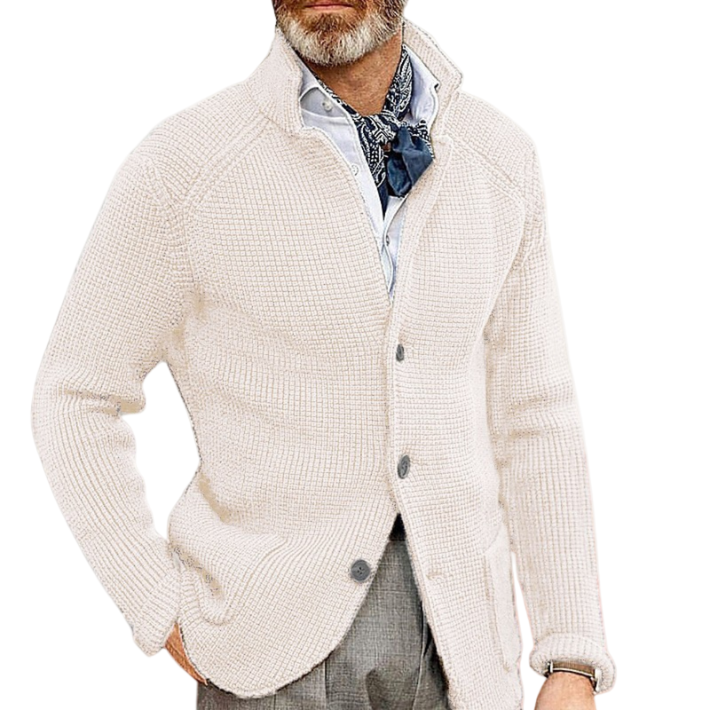 Ta dzianinowa kurtka dla mężczyzn ma teksturowany wzór, który podkreśla jej wygląd. Kurtka posiada zamek na guziki z przodu oraz stójkę, co czyni ją idealną do nakładania na koszulkę lub koszulę. Doskonała na przejściową pogodę, łącząc styl z funkcjonalnością.