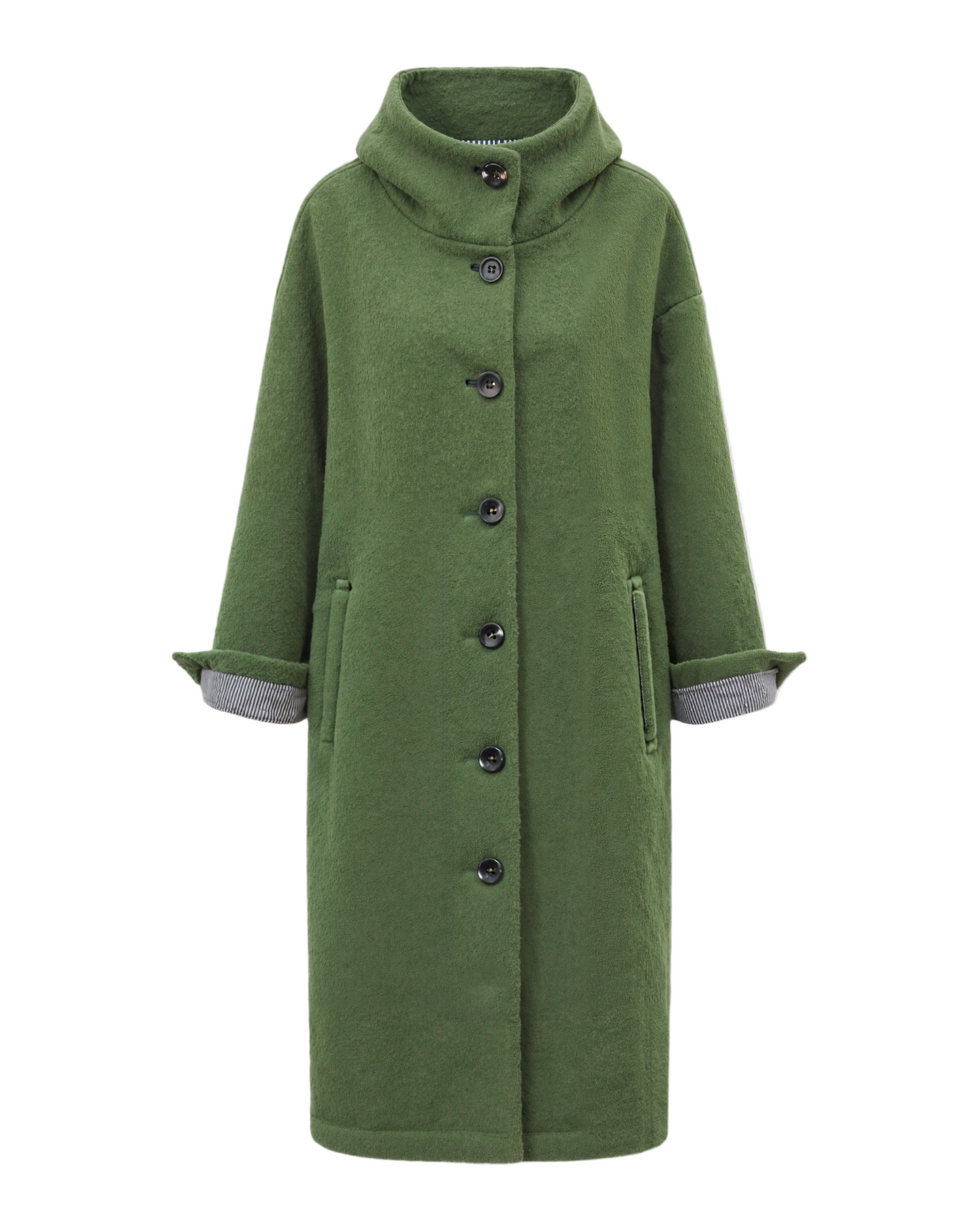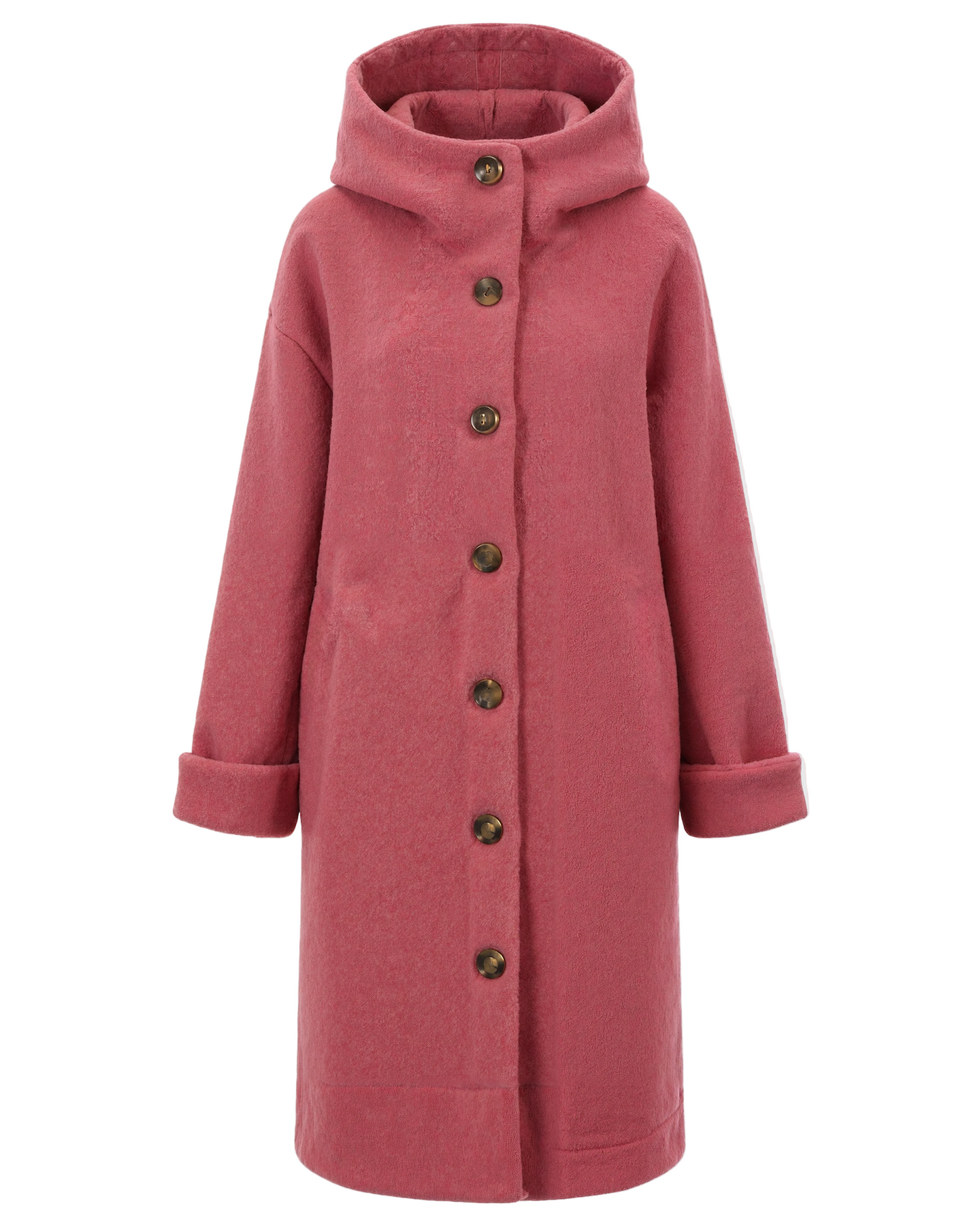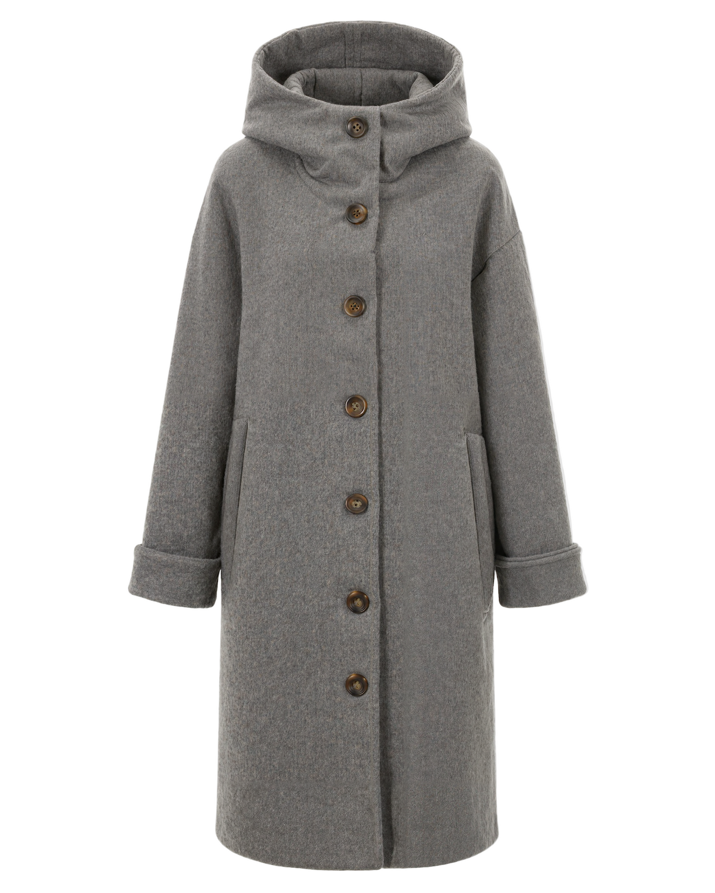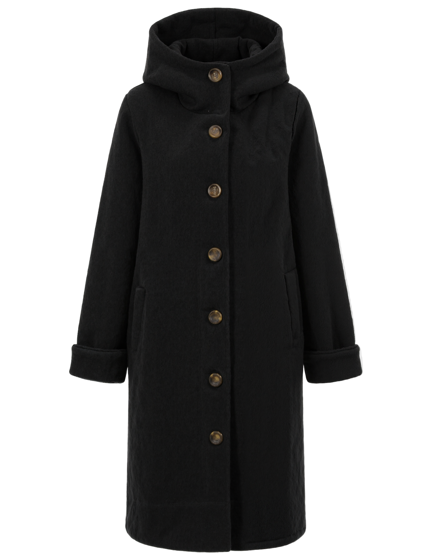 Ten Damski Płaszcz z Kapturem oferuje schludną równowagę ciepła i zrelaksowanego stylu. Charakteryzuje się luźną, szeroko skrojoną sylwetką, która dobrze sprawdza się do warstwowania na sezonowe stroje. Płaszcz zawiera kaptur, który zapewnia okrycie, oraz pełne zapięcie na guziki, które dodaje struktury. Ten element ma prosty, ponadczasowy kształt, który pasuje zarówno do casualowych, jak i schludnych-casualowych stylizacji.